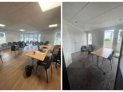 - Ensemble de bureaux modernes au cOEur du Finistère, à proximité immédiate de la Voie Express. Idéalement situé au centre du Finistère, cet ensemble immobilier à usage de bureaux bénéficie d’un emplacement stratégique à proximité directe de la Voie Express, offrant ainsi une excellente accessibilité et une desserte optimale de tout le département. Surface totale : 335 m² environ répartie sur deux niveaux Au 1er niveau, 261 m² environ d'ensemble de bureaux fonctionnel et lumineux, composé d'un pôle de réception avec entrée, un espace d’attente et accueil. Plusieurs bureaux individuels et open spaces modulables, deux blocs sanitaires. Accès par balcon extérieur ou PMR Cet espace est idéal pour accueillir une activité tertiaire, un cabinet d’études, un centre de formation ou une entreprise de services.