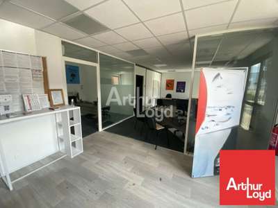 Situé au premier étage d'un ensemble immobilier tertiaire, ce bureau développe une surface totale d'environ 130 m² et offre un agencement fonctionnel. Il comprend trois bureaux fermés, un open-space lumineux de 32 m², un espace accueil de 28 m², une tisanerie ainsi que des sanitaires. La disposition des espaces a été pensée pour répondre aux besoins des entreprises en quête d'un environnement confortable, pratique et facilement accessible.