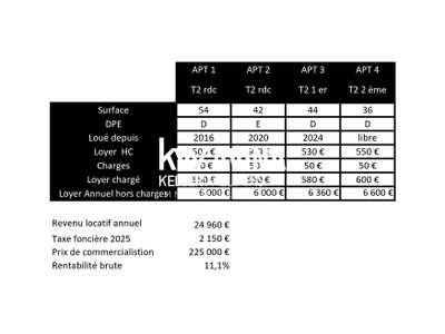 - accessible depuis le rez de chaussé Informations clés : Bien loué jusqu’en juillet 2027 (libre ensuite) Taxe foncière : 7 800 € DPE : vierge
