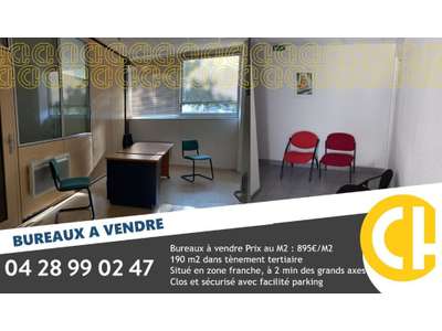 A vendre bureaux d'une surface de 190M2. Arrêt de bus à moins de 2 minutes Situé en zone franche à Valence Est à moins de 2 minutes de la Lacra, 10 minutes échangeur autoroute Valence Sud et Nord. Distribution actuelle : 1 ensemble de 190M2 composé de 5 Cellules de 18M2 et une cellule de 42m2.votre usage ou pour location. Nombreuse places de parking sur le tènement (copropriété) Prestations : - Accès plain-pied et normes PMR. - Kitchenette, - Climatisation reversible (DPE B et GES A) - reseau informatique - espace archive - Bureaux cloisonnés - Cloisons modulables, - Carrelage - bureaux lumineux, - Parking extérieur - Sanitaire(s) hommes et femmes séparés + Un sanitaire PMR - Grande facilité de parking, - Terrain clos. Espace extérieur adapté pour pause salariés. Desserte : Citéa ligne 8 Accès : 2 minutes de la Lacra, Accès par l'Avenue de Chabeuil proche Boulevard de ceinture. 15 minutes de la gare TGV, 10 minutes de la gare Valence ville. Surface : 190 m² Contactez-nous dès à présent pour en savoir plus au . D'autres biens disponibles sur